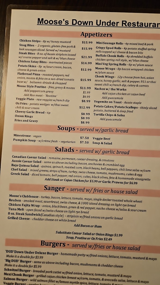 Welcome to Moose's Down Under Bar and Grill in Vancouver, a vibrant Australian-themed eatery that captures the essence of comfort food with a twist. Nestled at 830 W Pender St, this grill offers an extensive menu that caters to diverse palates.